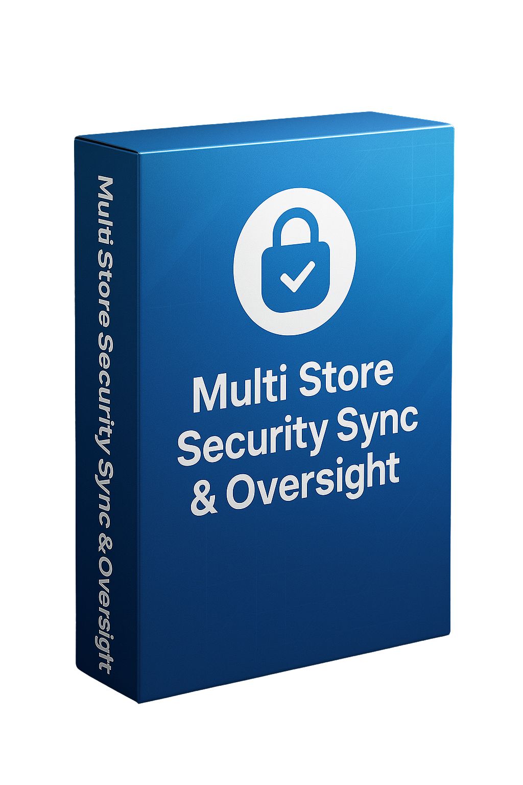 An advanced multi-store security management system that synchronizes protection settings, monitors vulnerabilities, and enforces consistent security protocols across all connected stores in real time